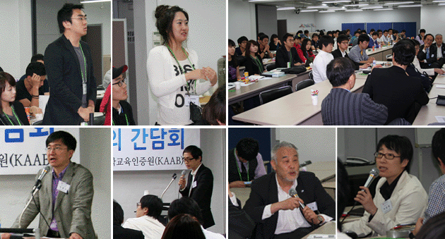 3. °£´ãȸ °³¿ä ¹× °á°ú KAAB´Â ±×µ¿¾ÈÀÇ ÀÎÁõ»ç¾÷¿¡¼ ÀÎÁõ»ç¾÷ÀÇ ÁÖü¶ó ÇÒ ¼ö ÀÖ´Â ÇлýµéÀ» ´ë»óÀ¸·Î ÀÎÁõ»ç¾÷ Àü¹Ý¿¡ ´ëÇÑ ³»¿ëÀ» ¼Ò°³ÇÔÀ¸·Î¼ ÀÎÁõÁ¦µµ¿¡ ´ëÇÑ ÀÌÇØ¸¦ ³ôÀ̰í, Çлýµé°úÀÇ °£´ãȸ¸¦ ÅëÇØ ºÎÁ·ÇÑ ºÎºÐÀ» °³¼±Çϱâ À§ÇØ ÀÎÁõÀÌ ºÎ¿©µÈ ÇÁ·Î±×·¥ÀÇ Çлý´ëÇ¥¸¦ ´ë»óÀ¸·Î °£´ãȸ¸¦ °³ÃÖÇÏ¿´´Ù. °£´ãȸ¿¡´Â 21°³ ÇÁ·Î±×·¥¿¡¼ ¾à 40¸í ÀÌ»óÀÌ Âü¿©¸¦ ÇÏ¿© ¸¹Àº °ü½ÉÀ» º¸¿´À¸¸ç Ȱ¹ßÇÑ ³íÀǰ¡ ÁøÇàµÇ¾ú´Ù. ÇâÈÄ ÀÎÁõ¿øÀº Áö¼ÓÀûÀ¸·Î Çлýµé°úÀÇ ¼ÒÅëÀ» À§ÇÑ °£´ãȸ¸¦ ÅëÇØ ÀÎÁõÁ¦µµ¸¦ ¹ßÀü½Ãų ¼ö ÀÖ´Â °è±â·Î »ïÀ» ¿¹Á¤ÀÌ´Ù.