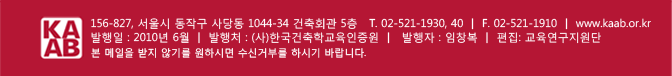 °³ ¿ä º» ¿ø¿¡¼´Â 2009³â ±³À°°úÇбâ¼úºÎ Áö¿ø°úÁ¦ÀÇ ÀÏȯÀ¸·Î ÀÎÁõÁ¦µµ¸¦ ¿î¿µÇÏÁö ¾Ê´Â ¾Æ½Ã¾Æ±Ç¿ª ±¹°¡µéÀÇ ´ëÇеéÀ» ´ë»óÀ¸·Î ±¹Á¦ »çȸ¿¡ ´ëÀÀÇϱâ À§ÇÑ °ÇÃàÇб³À°ÀÇ ÇöȲÀ» ¾Ë¾Æº¸°í µ¿½Ã¿¡ KAAB ÀÎÁõÁ¦µµÀÇ ¿ì¼ö¼ºÀ» ¾Ë¸®±â À§ÇÑ ¿¬±¸¸¦ ¼öÇàÇÑ ¹Ù ÀÖ´Ù. À̸¦ ÅëÇØ KAAB ÀÎÁõ»ç¾÷ÀÇ ±¹Á¦È °¡´É¼ºÀ» È®ÀÎÇÏ¿´À¸¸ç, ƯÈ÷ ¸ù°ñÀÇ °æ¿ì Àû±ØÀûÀÎ °ü½ÉÀ» Ç¥¸íÇÏ¿© KAAB 2010³â º½Çбâ ÀÎÁõ½Ç»ç¿¡ Âü°üÀ» ¿äûÇÏ¿´´Ù.