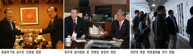 ÃæÁÖ´ëÇб³ °ø°ú´ëÇÐ °ÇÃàÇаú À§ ¿ø : 5¸í(ÆÀÀåÆ÷ÇÔ) / Âü°ü : 3¸í ±â °£ : 2010³â 5¿ù 09ÀÏ(ÀÏ) ~ 12ÀÏ(¼ö) ¡Ø ¸ù°ñ °úÇбâ¼ú´ëÇб³(MUST) Âü°ü ¸ù°ñ °úÇбâ¼ú´ëÇб³(MUST)ÀÇ ¿äû¿¡ ÀÇÇØ Åä¸ñ°øÇÐ ¹× °ÇÃà´ëÇп¡¼ 4¸íÀÇ ±³¼ö¿Í Å뿪1ÀÎ, ÃÑ 5¸íÀÌ Çѱ¹À» ¹æ¹®ÇÏ¿© ÃæÁÖ´ëÇб³ ÀÎÁõ½Ç»ç °úÁ¤À» Âü°üÇÏ¿´´Ù. |