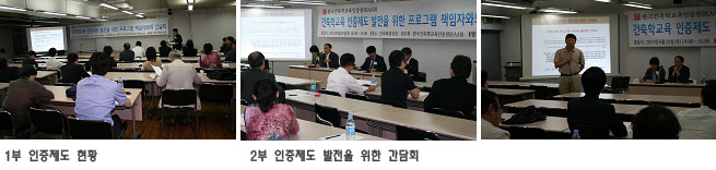 2006³â ±¹³» ÃÖÃÊÀÇ ÀÎÁõ½Ç»ç ÀÌÈÄ 2¹øÂ° ÀÎÁõ ÁֱⰡ ½ÃÀ۵Ǵ ½ÃÁ¡¿¡¼, º¸´Ù ÁøÀϺ¸ÇÑ ÀÎÁõÁ¦µµÀÇ ¿î¿µÀ» À§ÇØ °ÇÃàÇб³À° Àü¹®ÇÐÀ§ ÀÎÁõ ÇÁ·Î±×·¥À» ´ë»óÀ¸·Î ±¹³»¿Ü °ÇÃàÇб³À° ÀÎÁõÁ¦µµ ÇöȲ ¼³¸í ¹× ÀÎÁõÁ¦µµ °³¼±À» À§ÇÑ °£´ãȸ¸¦ °³ÃÖÇÏ¿´´Ù.