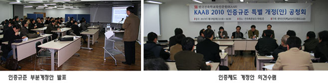 Çѱ¹°ÇÃàÇб³À°ÀÎÁõ¿ø 2010 ÀÎÁõ±ÔÁØ Æ¯º° °³Á¤ °øÃ»È¸ ÀÏ ½Ã : 2012³â 1¿ù 19ÀÏ(¸ñ), ¿ÀÈÄ 14:00 ~ Àå ¼Ò : Çѱ¹°ÇÃàÇб³À°ÀÎÁõ¿ø(´ëÇѰÇÃàÇÐȸ B/D ÁöÇÏ2Ãþ) ÁÖ °ü : Çѱ¹°ÇÃàÇб³À°ÀÎÁõ¿ø ´ë »ó : KAAB ÀÎÁõ´ë»ó °ÇÃàÇб³À° ÇÁ·Î±×·¥ °ÇÀοøÀº 2005³â ÀÎÁõ±ÔÁØ¿¡¼ ³ªÅ¸³ °³¼±Á¡µéÀ» º¸¿ÏÇÏ¿© 2010³â ÀÎÁõ±ÔÁØÀ» °øÇ¥ÇÏ¿´À¸³ª °ÇÃà»ç¹ý °³Á¤°ú °íµî±³À°¹ý¿¡ ÀÇÇÑ ÀÎÁ¤±â°ü ÁöÁ¤ ½É»ç°úÁ¤¿¡¼ ³ªÅ¸³ ÀϺΠº¸¿Ï»çÇ×À» ¹Ý¿µÇÏ¿© ÀÎÁõ±ÔÁØ °³Á¤À» ÃßÁøÇÏ°Ô µÇ¾ú´Ù. µû¶ó¼ 2010 ÀÎÁõ±ÔÁØ ÀϺΠ°³¼±¾È¿¡ ´ëÇÑ Àǰ߼ö·ÅÀ» À§ÇØ Àü±¹ÀÇ ÀÎÁõ´ë»ó ÇÁ·Î±×·¥ ´ëÇ¥¸¦ ´ë»óÀ¸·Î °øÃ»È¸¸¦ °³ÃÖÇÏ¿´À¸¸ç ¶ÇÇÑ °ÇÃàÇб³À° ÀÎÁõ»ç¾÷ ÇöȲ ¹× °ÇÃàÇб³À° ÇÁ·Î±×·¥ ¿î¿µ °³¼± ¹æ¾È¿¡ ´ëÇÑ ¼³¸í µîÀÌ ÀÌ·ç¾îÁ³´Ù.