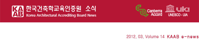 Àεµ³×½Ã¾Æ UII ´ëÇÐ ¿÷¼¥¿¡ Âü¿©ÇÑ ITB ´ëÇРåÀÓÀÚ°¡ KAABÀÇ ±¹Á¦ ÀÎÁ¤»ç¾÷ (Substantial Equivalency)¿¡ ½ÅûÀÇÁö¸¦ Ç¥¸íÇÏ¿´À¸¸ç, KAAB´Â °ü·Ã »ç¾÷¿¡ ´ëÇÑ ±ÔÁ¤°ú ÀýÂ÷¸¦ ¸¶·Ã ÁßÀÌ´Ù. ■ ÀÏÁ¤ : 2012³â ÇϹݱâ Áß ■ °ü·Ã »ç¾÷¿¡ ´ëÇÑ ±ÔÁ¤°ú ÀýÂ÷ ¸¶·Ã Áß | |||||||||